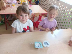 Z okazji zbliżającego się Dnia Mamy mali uczestnicy projektu „Edukacja przez zabawę!” wykonali podczas warsztatów rękodzielniczych naturalne mydełka.