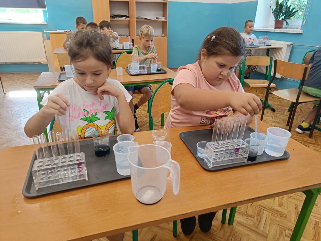 Zajęcia obfitowały w ciekawe eksperymenty i doświadczenia, które miały za zadanie kształtować u uczestników myślenie naukowe, umiejętność formułowania wniosków opartych na obserwacjach, a także wspierać w odkrywaniu zainteresowań i przygotowaniu do dalszej edukacji.