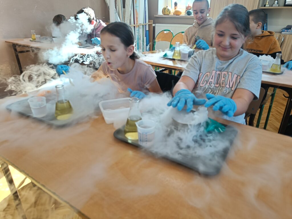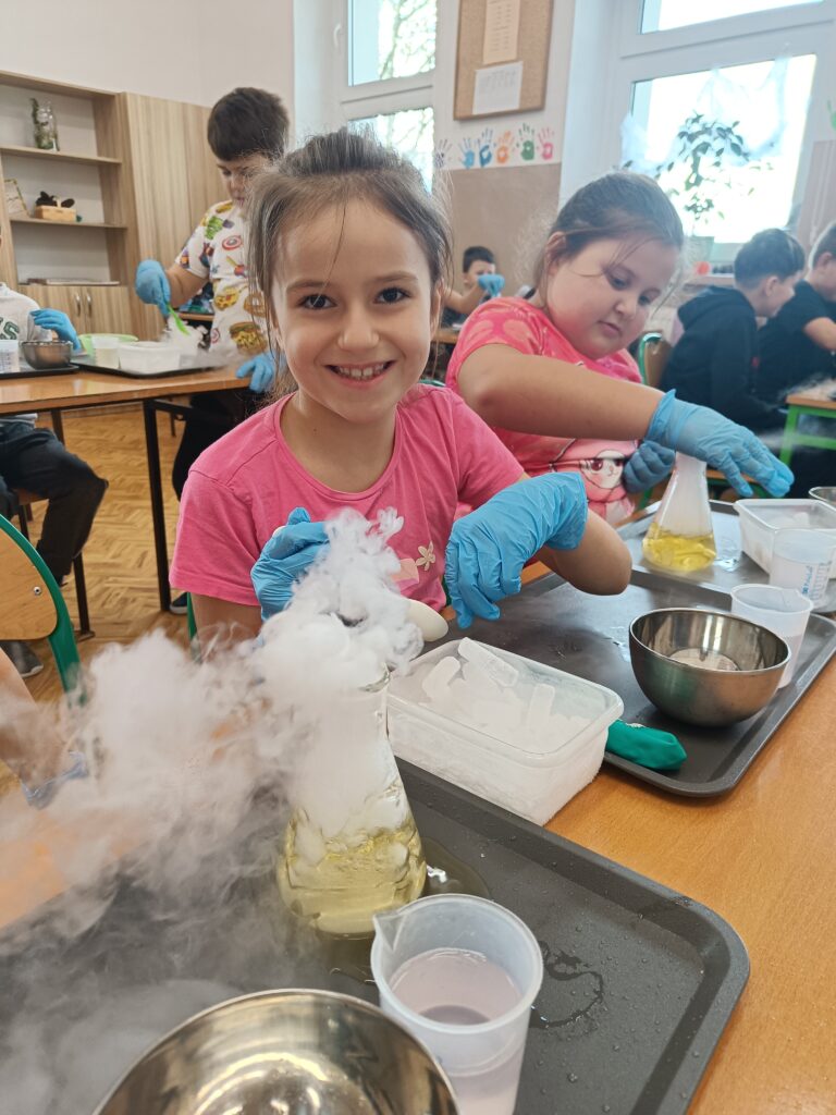W ramach zadania publicznego zrealizowaliśmy warsztaty z zakresu nauk ścisłych, takich jak chemia, fizyka i biologia dla 150 dzieci z terenu gminy Jabłonna.